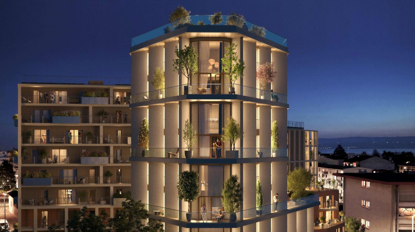 À deux pas de la gare et du centre-ville, Éclat Léman s’installe dans un emplacement privilégié. Ici, la vie bat son plein : commerces, terrasses animées, services à portée de main… et, en toile de fond, l’horizon grandiose du lac Léman et la silhouette des Alpes.