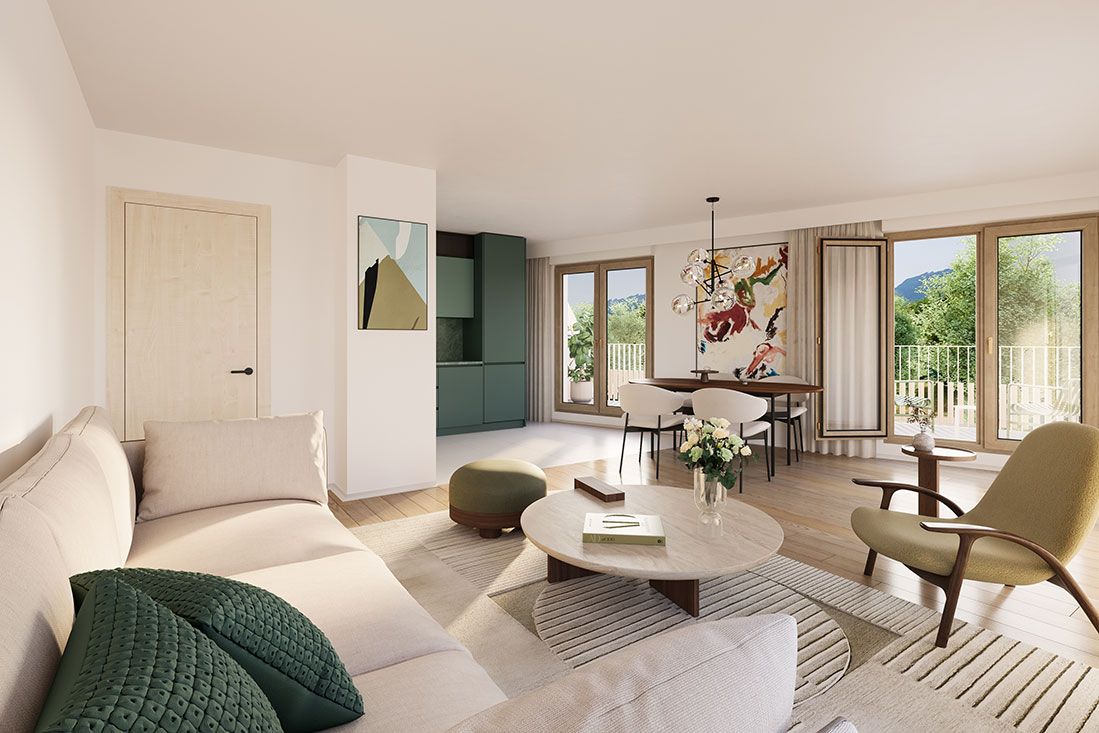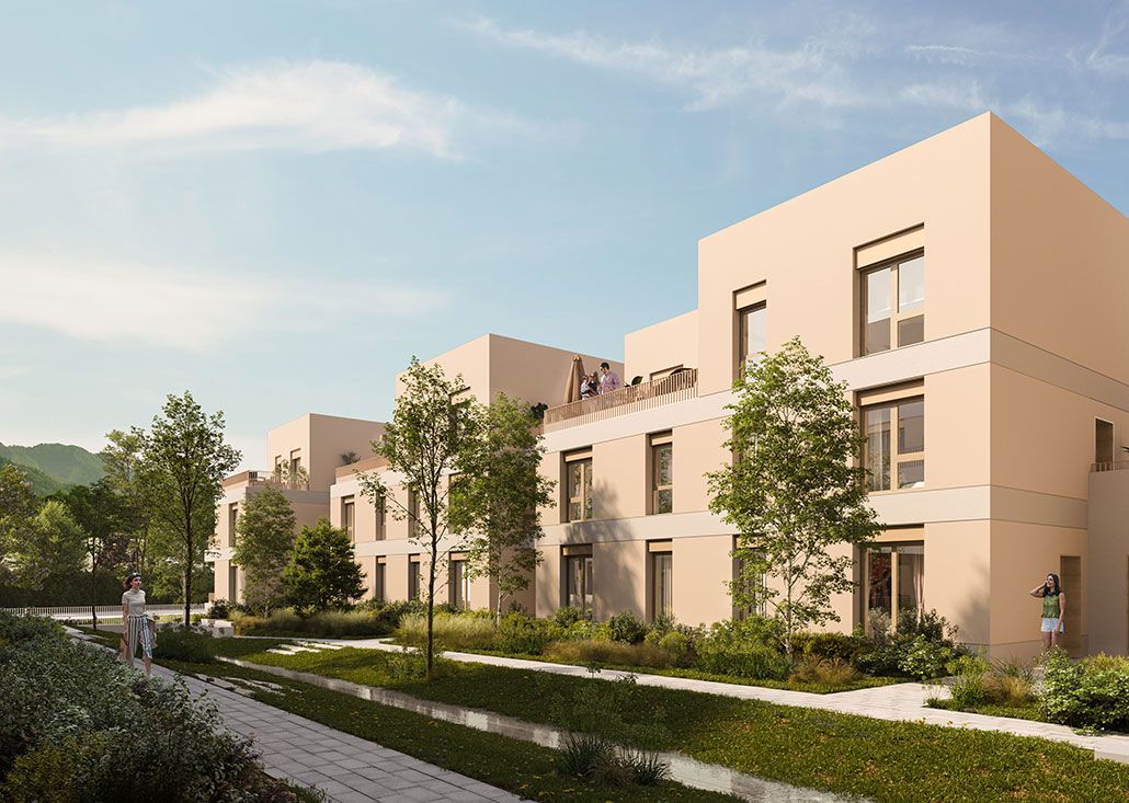 La résidence Sourcea s’inscrit dans le quartier des Portes du Vercors, le long de la rue du Colonel Manhès. Elle se compose de deux bâtiments collectifs en R 5 et de logements intermédiaires en R 2 à R 3, avec une architecture contemporaine, sobre et élégante. Elle propose 36 logements en accession libre, du 2 au 5 pièces. Les appartements bénéficient de volumes généreux, d’une double orientation ou d’une configuration traversante et d’espaces extérieurs variés. Le cœur d’îlot végétalisé, pensé comme un jardin partagé, offre un lien direct avec la nature.Quartier jardin au cœur de Fontaine, avec vues sur les massifs environnants Appartements lumineux, traversants ou bi-orientés Jardin partagé avec bacs potagers, assises ombragées et noue paysagère Espaces extérieurs variés : balcons, terrasses, jardins privatifs Architecture bioclimatique et matériaux durablesAppartements : Typologies du 2 au 5 pièces Cuisine et séjour formant un espace de vie principal spacieux Isolation phonique renforcéeChauffage par géothermie Celliers pratiques en rez-de-chaussée Parking en sous-sol Grand local vélos Espaces extérieurs : Jardin partagé avec bacs potagers et mobilier convivial Noue paysagère pour la gestion des eaux pluviales Végétalisation abondante avec essences locales et non allergisantes Toitures végétalisées et panneaux photovoltaïquesÀ proximité de la résidence à pied : Arrêt de bus « Gérard Philipe » à 210 m Tram A à 650 m (arrêt Charles Michels) Pôle multimodal « La Poya » à 700 m Commerces, supermarché, cinéma et restaurants accessibles à pied Établissements scolaires à distance piétonne En train : Gare de Grenoble à 4,3 km Lyon Part-Dieu en 1h23 Paris Gare de Lyon en 3h34 via Valence TGV En voiture : Grenoble à 3 km Lyon à 110 km Genève à 155 km
