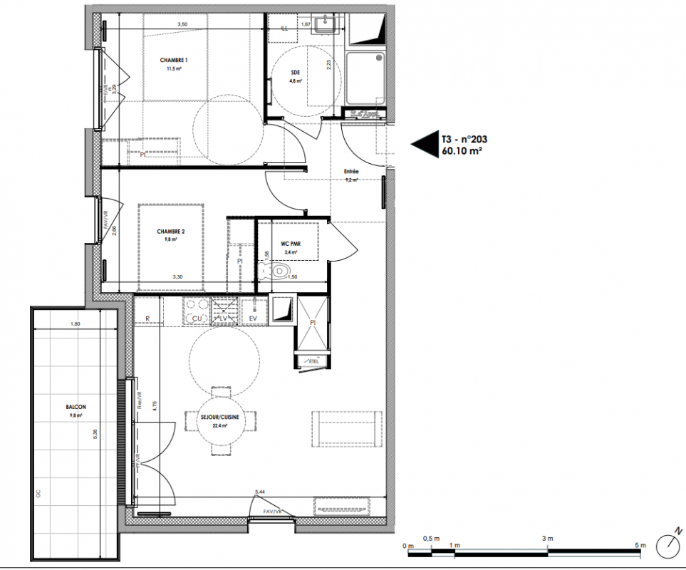 230 000€ Appt. T3 60.3m2