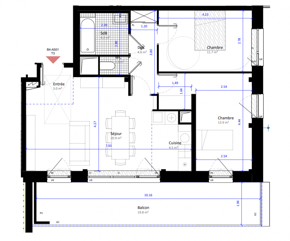 | Voir | Disponible | 281 000€ | B4-A301 | Appt. | T3 | 64.5m2 | 3ème | Disponible | 281 000€ | Voir |