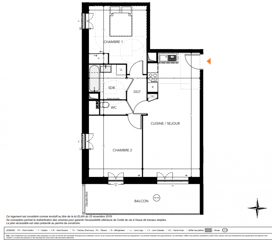 246 000€ Appt. T3 57.54m2 1er