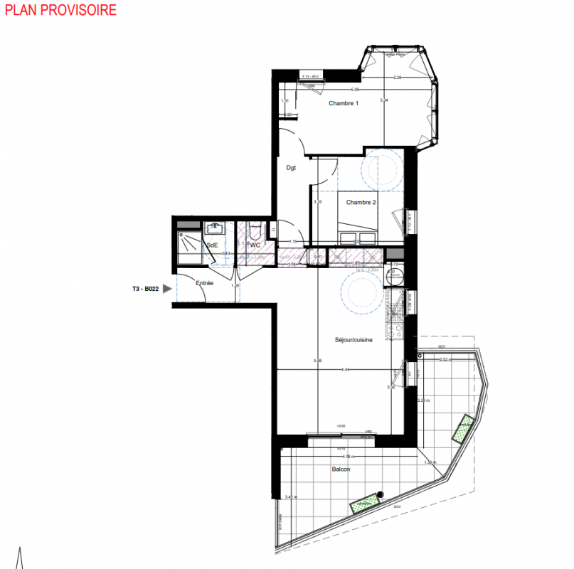 188 750€ Appt. T3 64.22m2 2ème