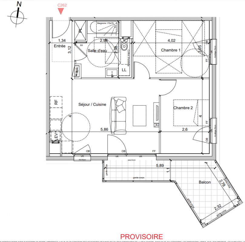 294 028€ Appt. T3 59.64m2 5ème