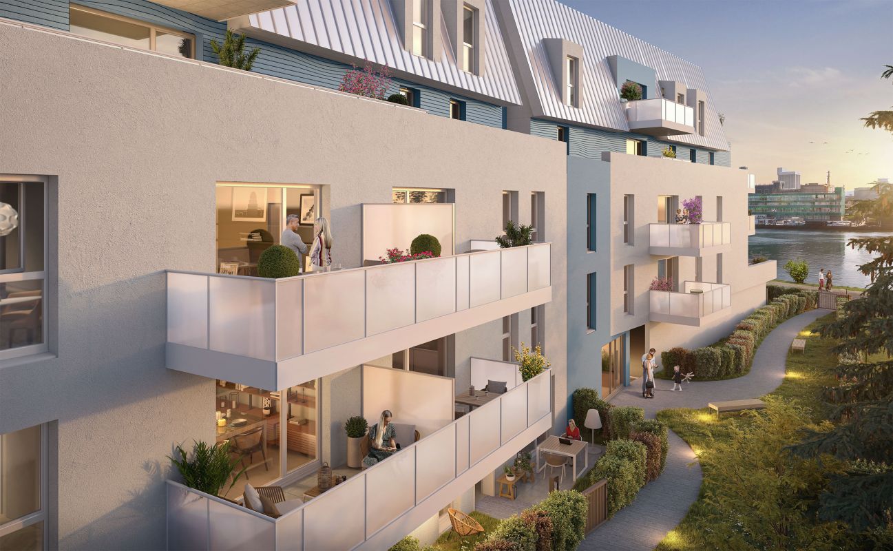 Le Kin - Appartements neufs à Huningue, au coeur des trois frontières. Située 9 Quai du Maroc, la résidence bénéficie d'un emplacement privilégié, au pied du Parc des Eaux Vives et à prox...