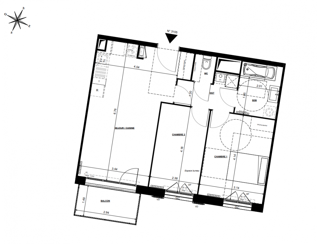 | Voir | Disponible | 216 114€ | 3103 | Appt. | T3 | 58.68m2 | 1er | Disponible | 216 114€ | Voir |