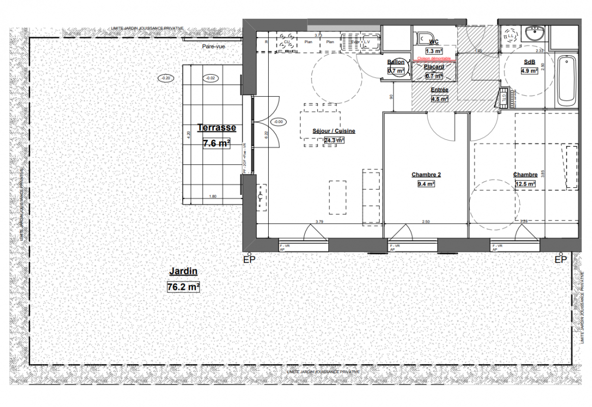 233 100€ Appt. T3 61.7m2 0-RDC