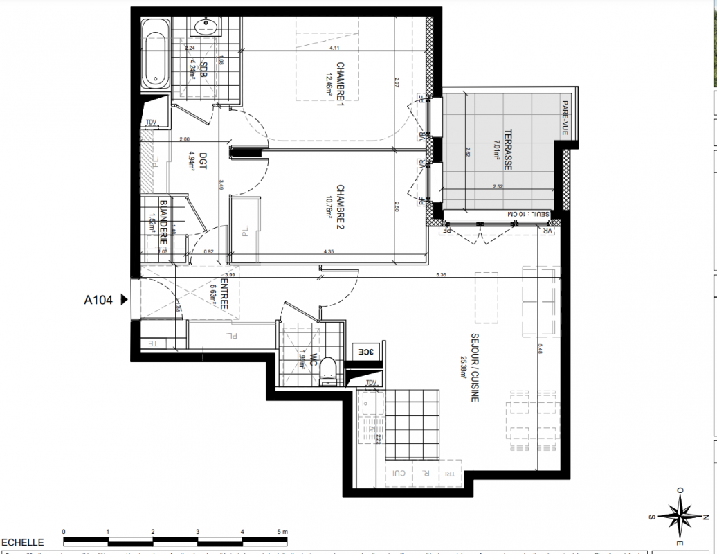 441 000€ Appt. T3 70.55m2 0-RDC