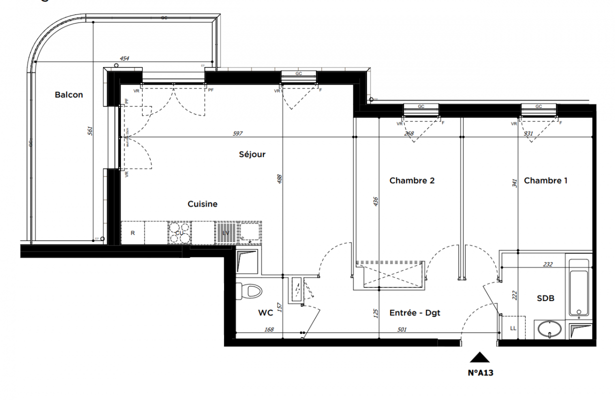 416 500€ Appt. T3 63.4m2 2ème