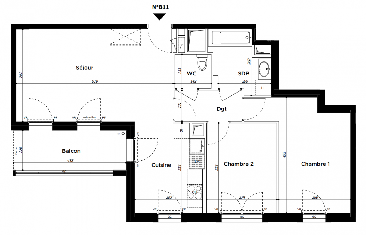 416 500€ Appt. T3 63.4m2 2ème