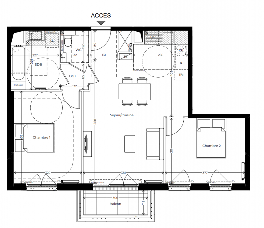 387 000€ Appt. - 57.2m2 2ème