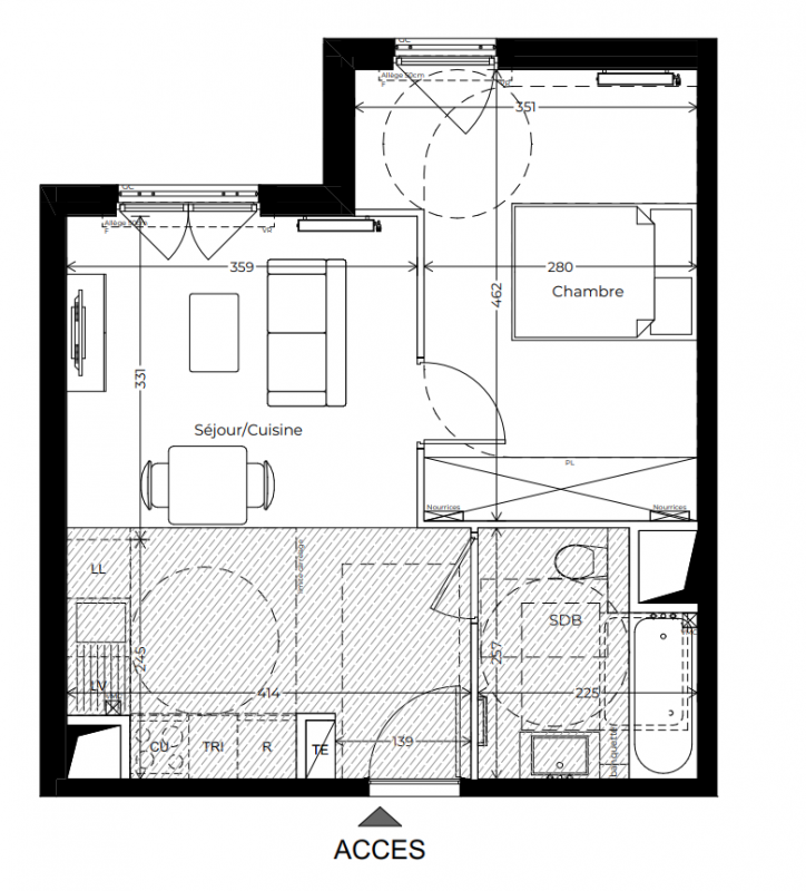 333 000€ Appt. - 43.8m2 0-RDC