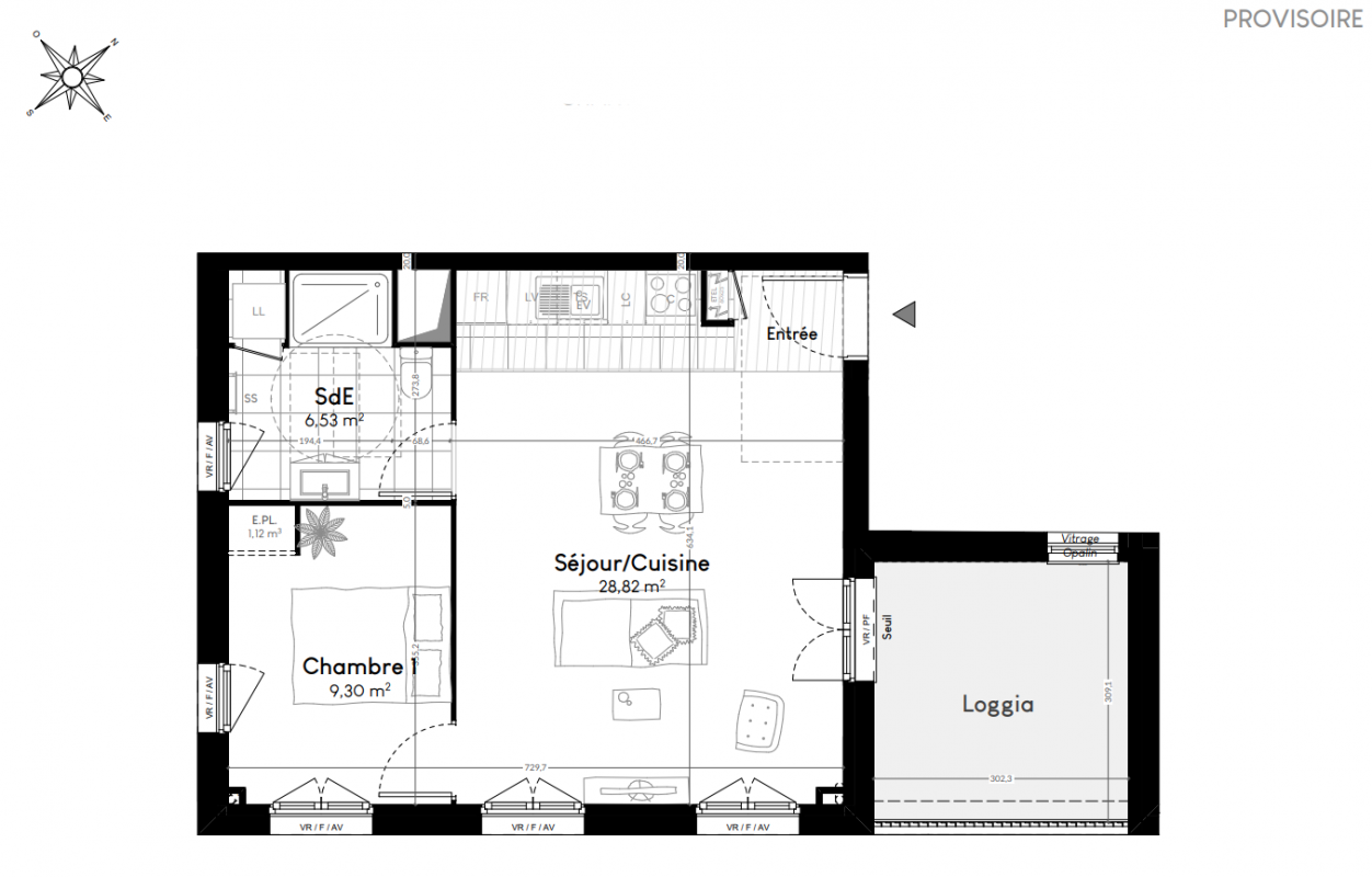 309 900€ Appt. - 60.09m2 3ème