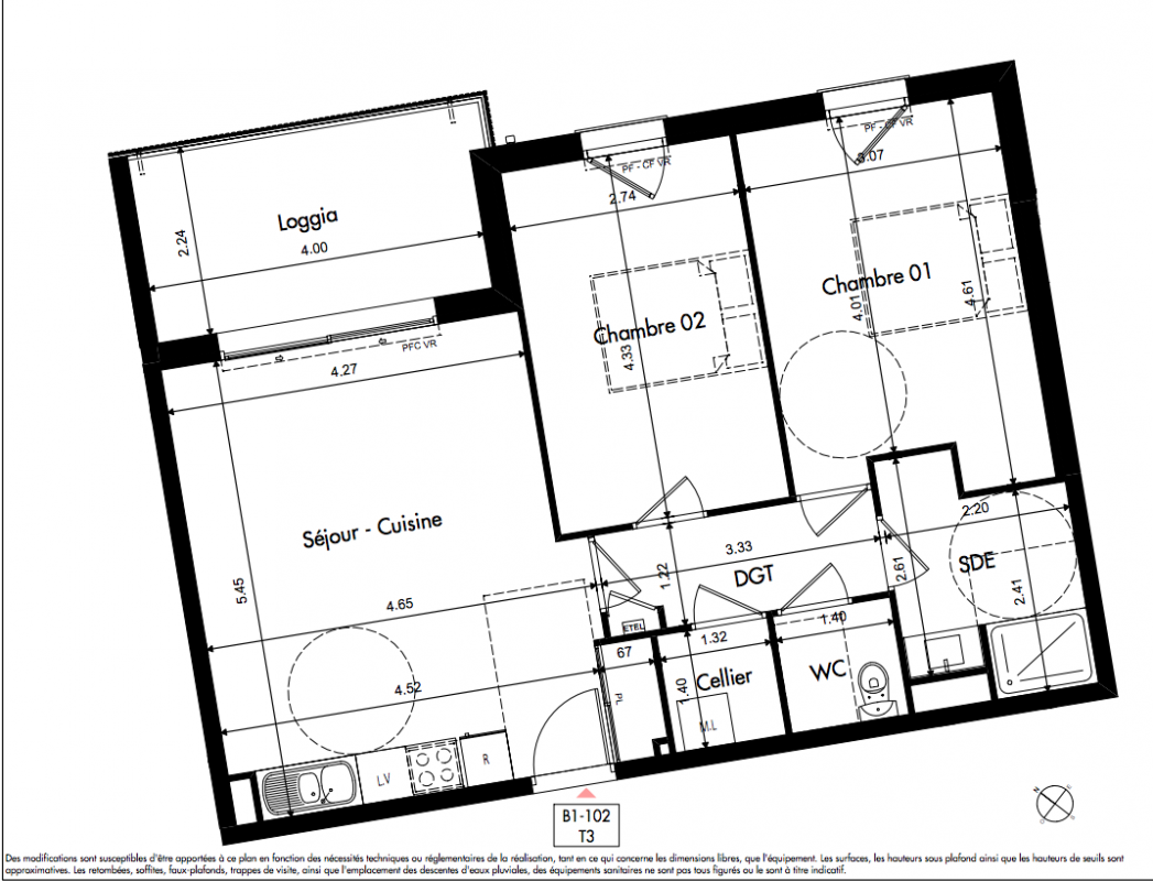 223 000€ Appt. T3 63.09m2 2ème