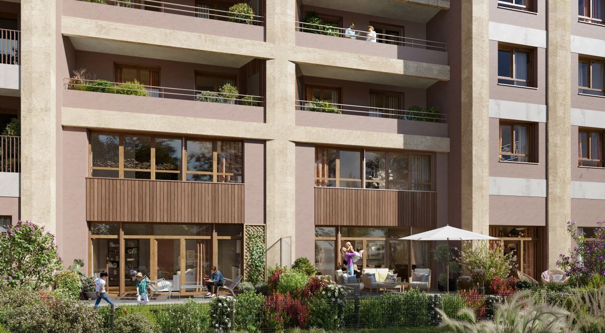 La résidence CARACTÈRE bénéficie d’un emplacement privilégié, en retrait de la rue, dans un environnement où tout est accessible à pied et où les aménagements paysagers contribuent pleinement au bien-être quotidien. Elle propose des appartements confortables du studio au 5 pièces duplex, dotés de grands espaces extérieurs et de vues dégagées, au sein d’une architecture contemporaine aux teintes sable.