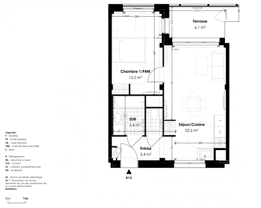 336 000€ Appt. T2 46.5m2 0-RDC