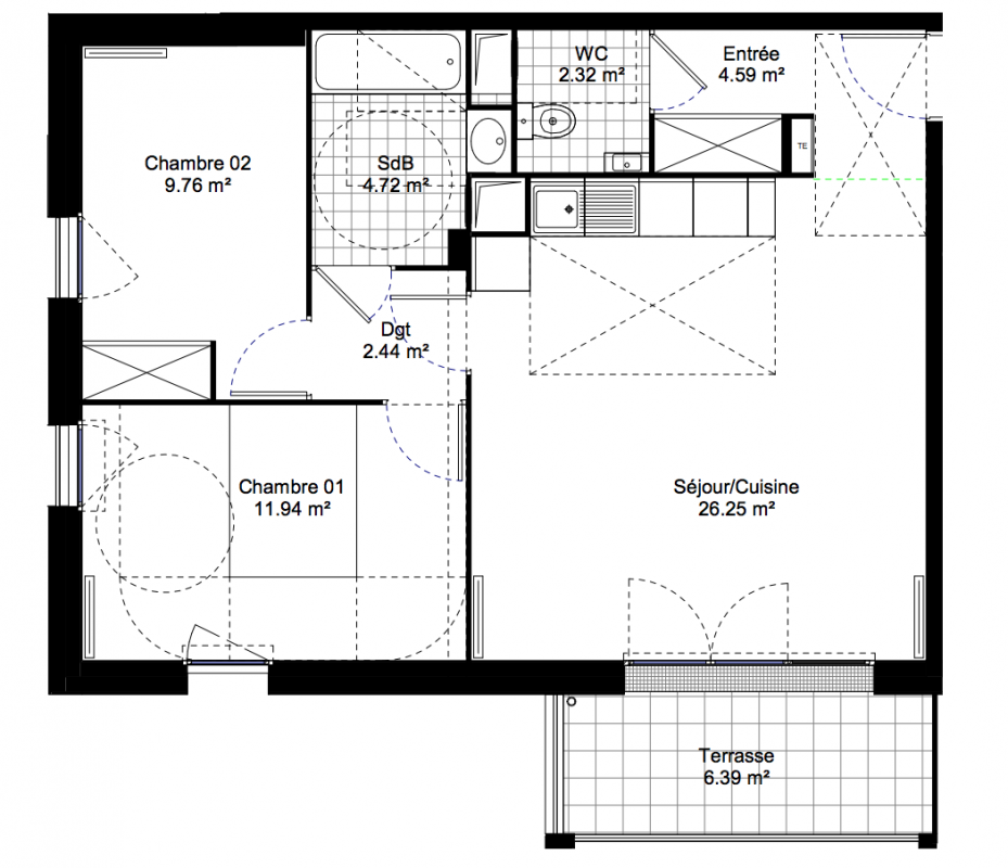 264 600€ Appt. T3 64.14m2 0-RDC