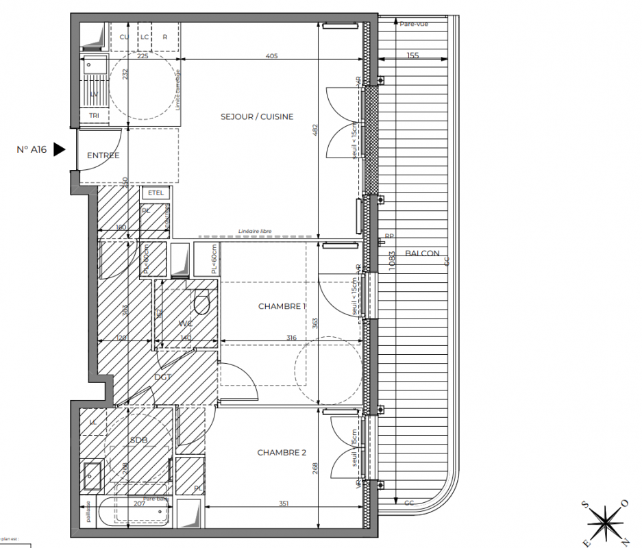 Cloisons épaisseur 7 cm dans l’ensemble des logements