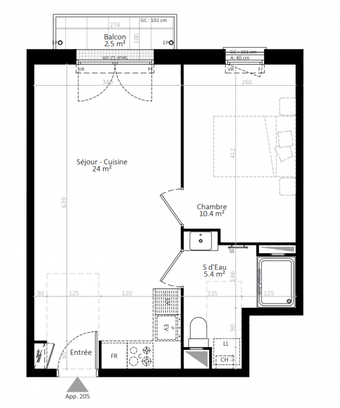 | Voir | Disponible | 218 275€ | 104 | Appt. | T2 | 41.4m2 | 1er | Disponible | 218 275€ | Voir |