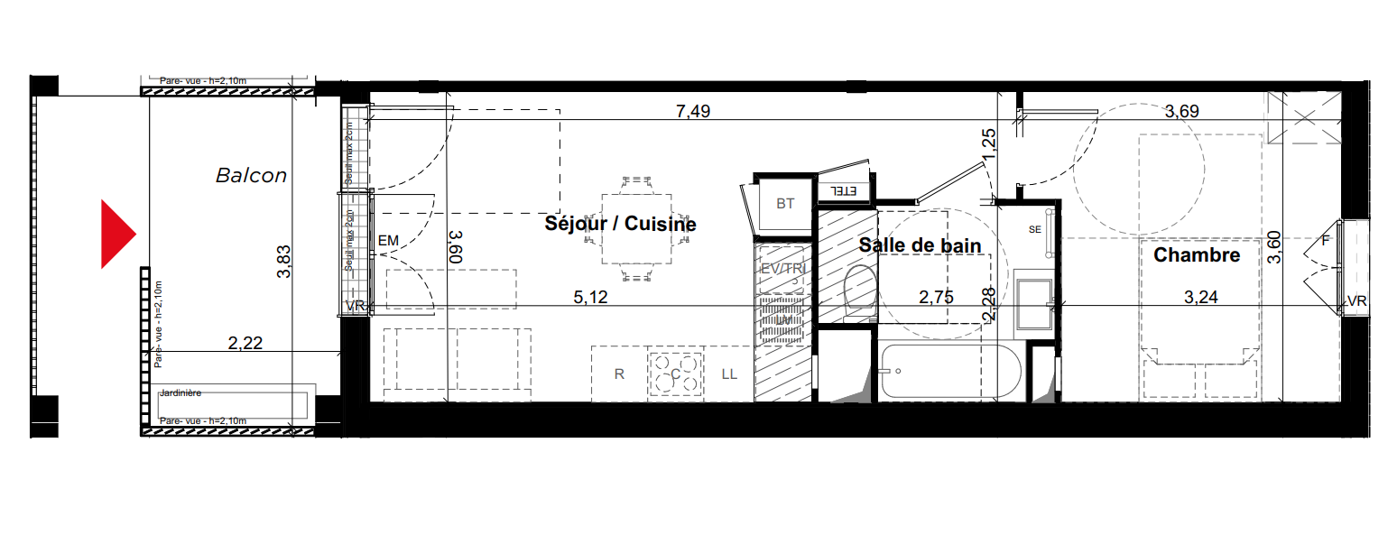 | Voir | Disponible | 173 900€ | B03 | Appt. | - | 37.66m2 | 0-RDC | Disponible | 173 900€ | Voir |