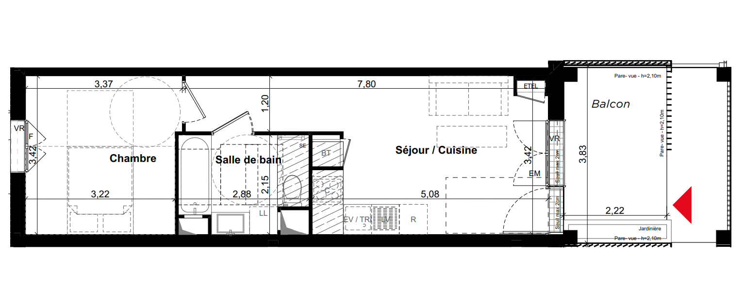 169 900€ Appt. - 38.09m2 0-RDC