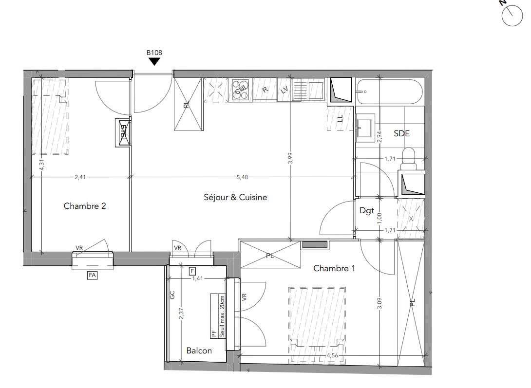 224 000€ Appt. T3 56.11m2 2ème