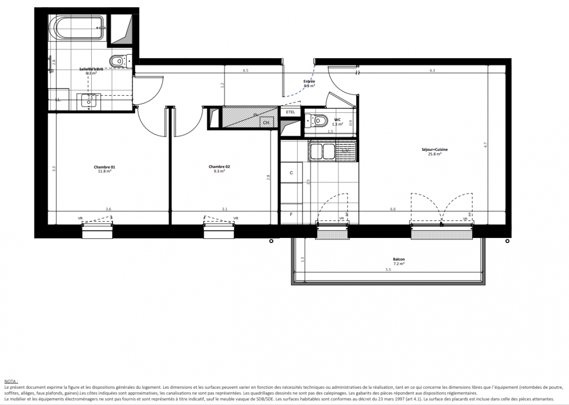 285 900€ Appt. T3 58.5m2 3ème