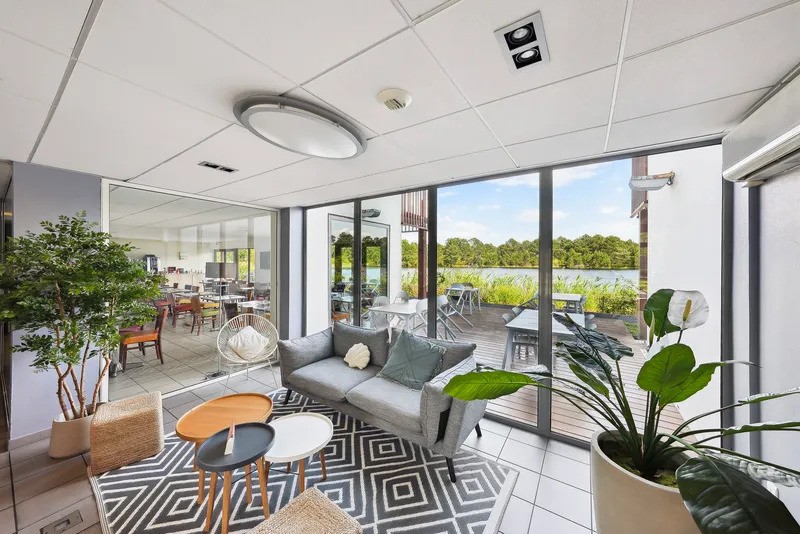 Située au bord d'un lac dans la commune de la Teste-de-Buch, la résidence propose des appartements allants du studio à la suite pouvant accueillir jusqu'à 6 personnes, meublés, équipés et prolongés d'un balcon. La résidence propose également plusieurs espaces communs : espace restauration, piscine extérieure, salle de sport, laverie, salle de réunion et séminaire, parking sécurisé... L'établissement bénéficie d'un emplacement privilégié au cœur du Bassin d'Arcachon, à 7 kilomètres de la plage de La Teste-de-Buch et de la Dune du Pilat, à 9 kilomètres de la station balnéaire d'Arcachon et à 11 kilomètres du lac de Cazaux.