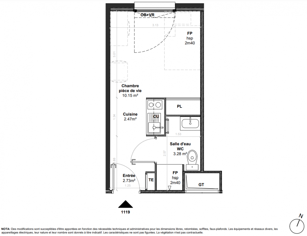 107 700€ Appt. Studio 18m2 0-RDC