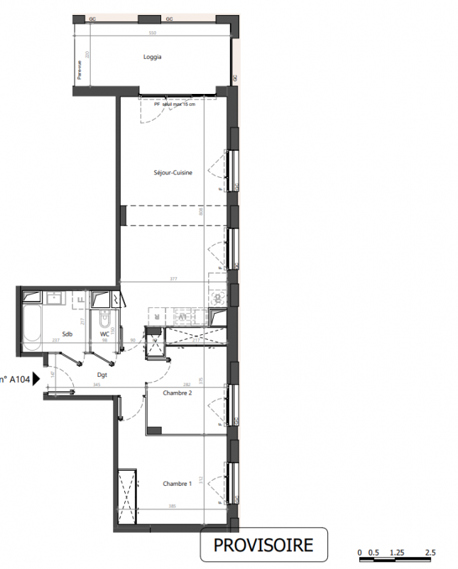 303 000€ Appt. T3 65.61m2 2ème