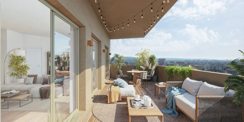- T4 et T5 en attique avec grandes terrasses (jusqu'à 70 m²) : clientèle familiale urbaine et CSP+.