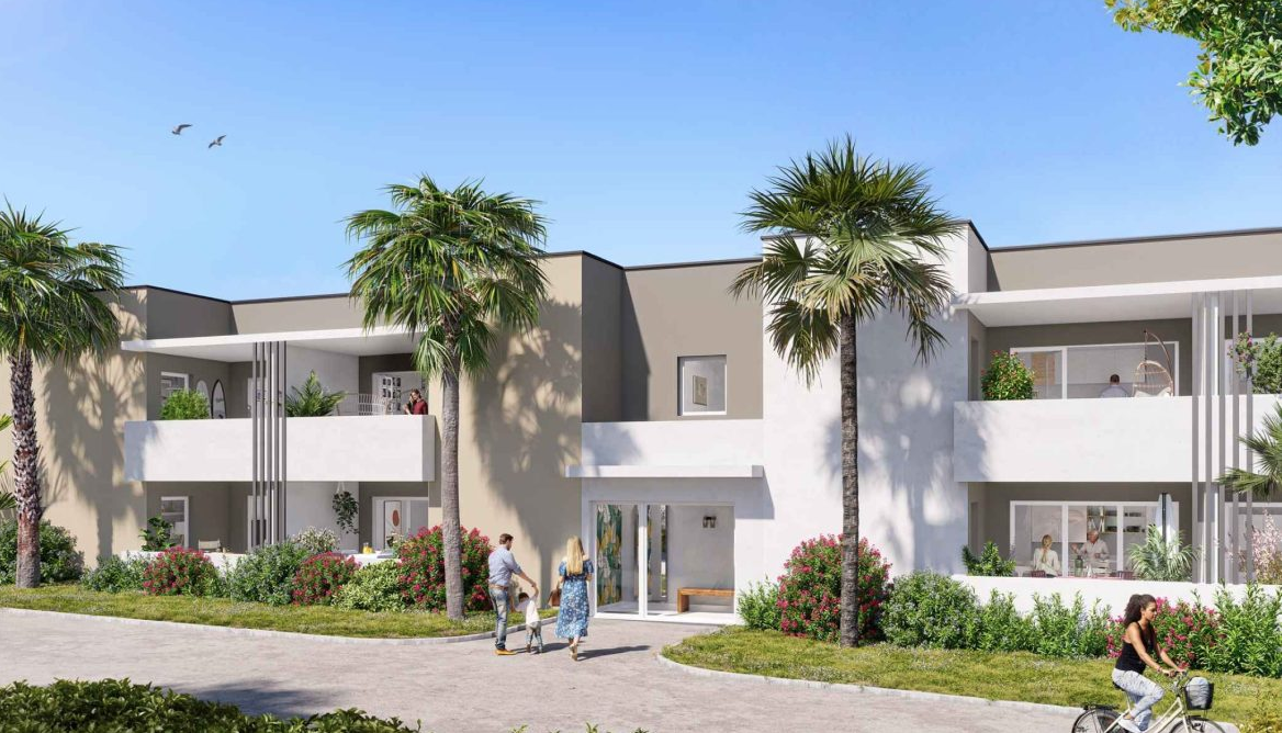 Au cœur de Marseillan, laissez-vous séduire par la silhouette contemporaine de votre nouvelle résidence Vianova. Façades aux tons clairs et taupe, palmiers et espaces verts composent un cadre verdoyant, calme et lumineux. Les appartements de 2 et 3 pièces, tous prolongés par de beaux balcons ou terrasses ensoleillées, offrent des volumes agréables, certains 3 pièces bénéficiant de configurations d’angle. À seulement 10 minutes à pied du centre historique, à proximité de l’étang de Thau et de ses restaurants, la résidence propose un art de vivre serein, durable et parfaitement intégré à son environnement.