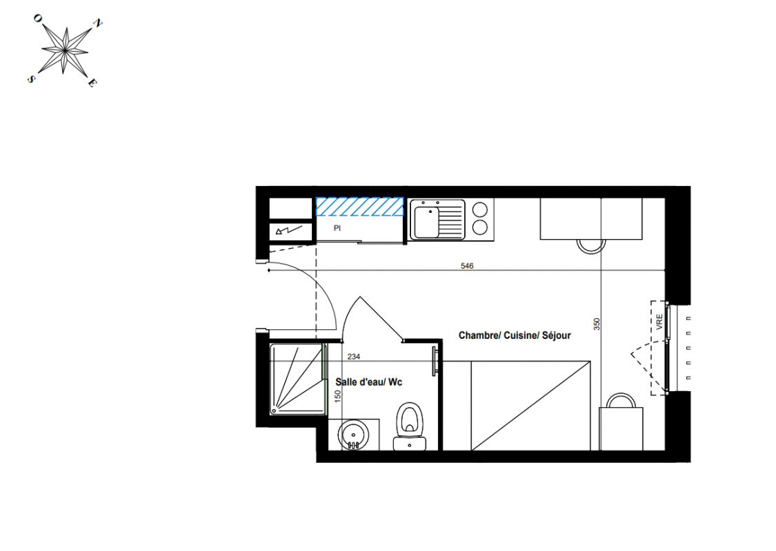 163 704€ Appt. Studio 23.03m2 0-RDC