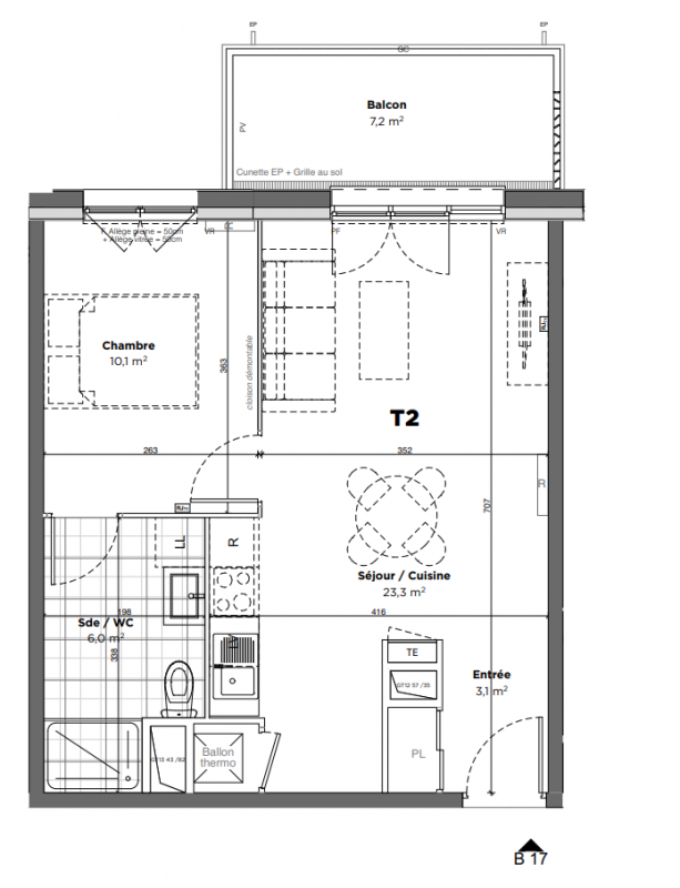 | Voir | Disponible | 153 500€ | B14 | Appt. | T2 | 42.4m2 | 1er | Disponible | 153 500€ | Voir |