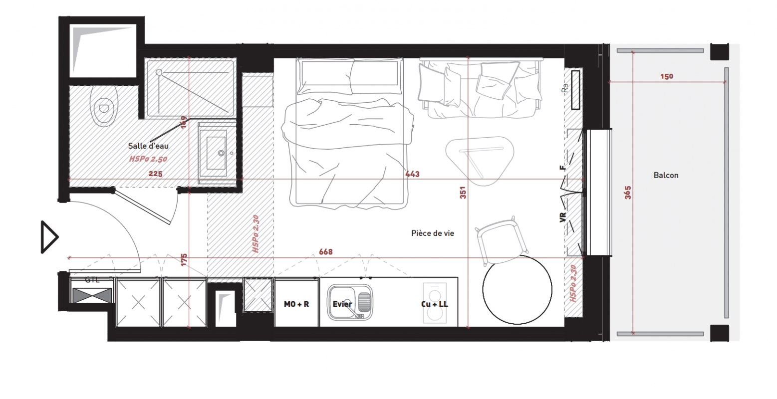 176 243€ Appt. Studio 20.82m2 0-RDC